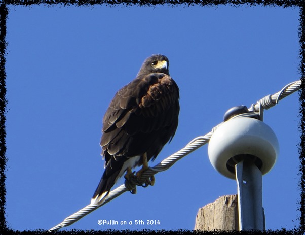 Here is our Harris Hawk, again. I found out that these guys are pack hunters (something like an aerial wolf pack) and cooperate with small groups of up to seven birds to catch the unlucky rabbit, squirrel, or rat that they spot. No other raptor type of bird does this. I haven’t seen that happen yet - but I think it would be rather cool to see.